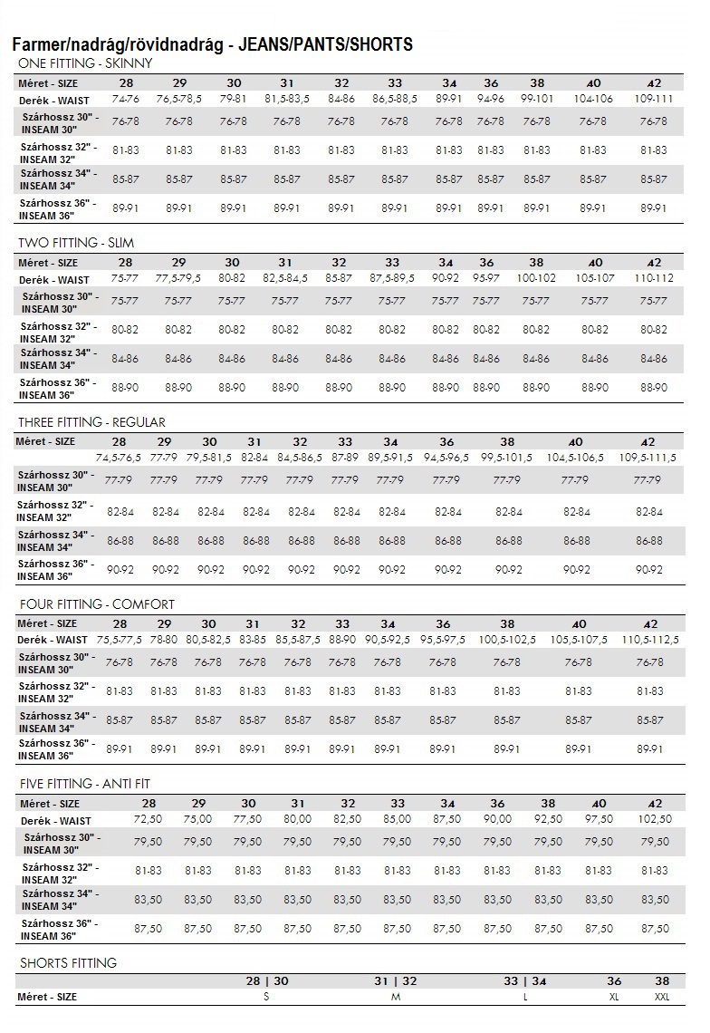 Farmer és nadrág méret